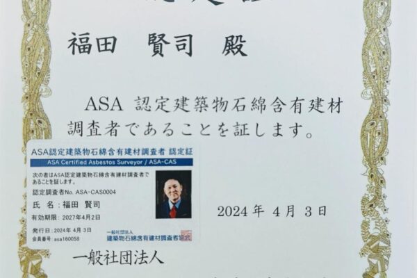 ASA認定建築物石綿含有建材調査者 資格取得!